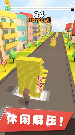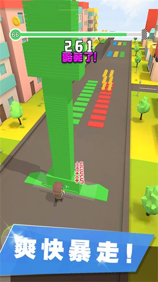 1、用户快去推动小车,按照小车颜色堆叠正确的砖块。
