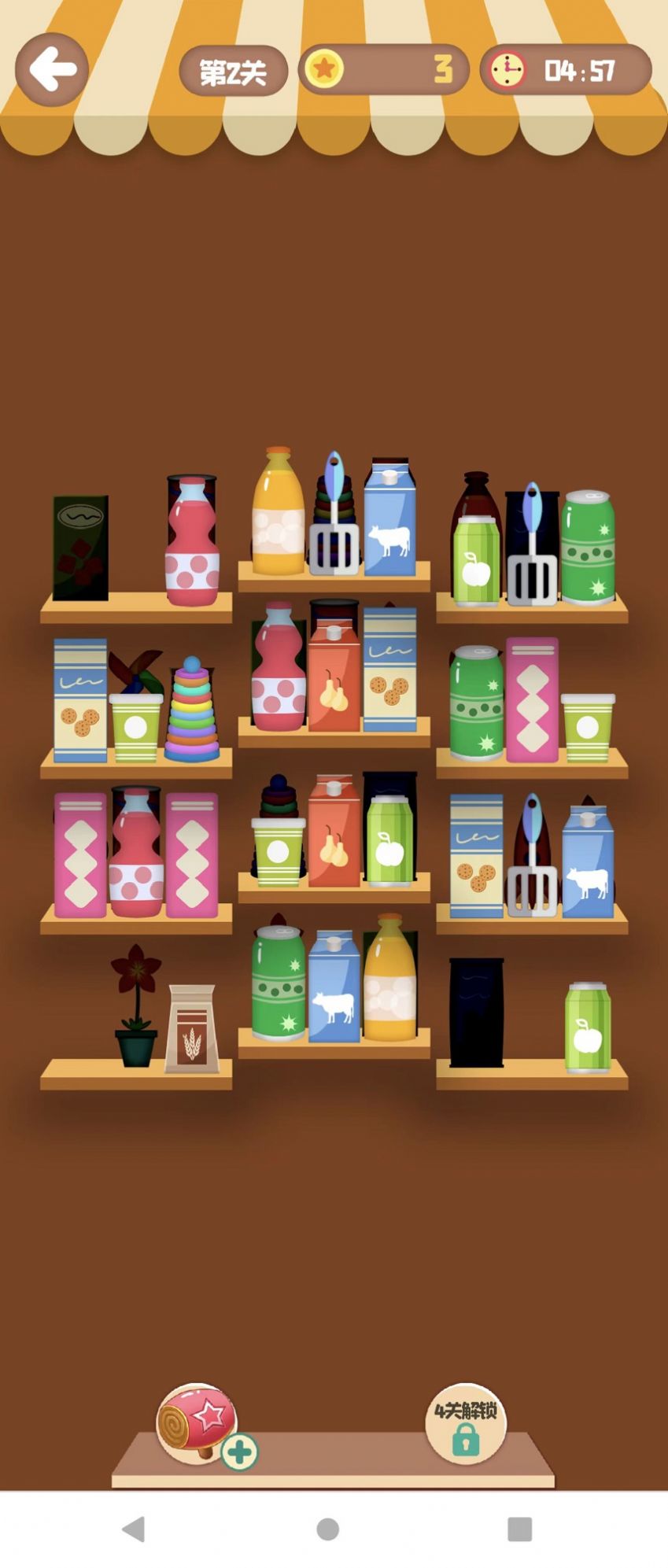 小卖部消消乐作为一款全新消除类益智休闲闯关手游,小卖部消消乐游戏上线了全新的货架关卡,在游戏里玩家可以自由移动物品进行分类整理,将相同的物品进行连线消除。