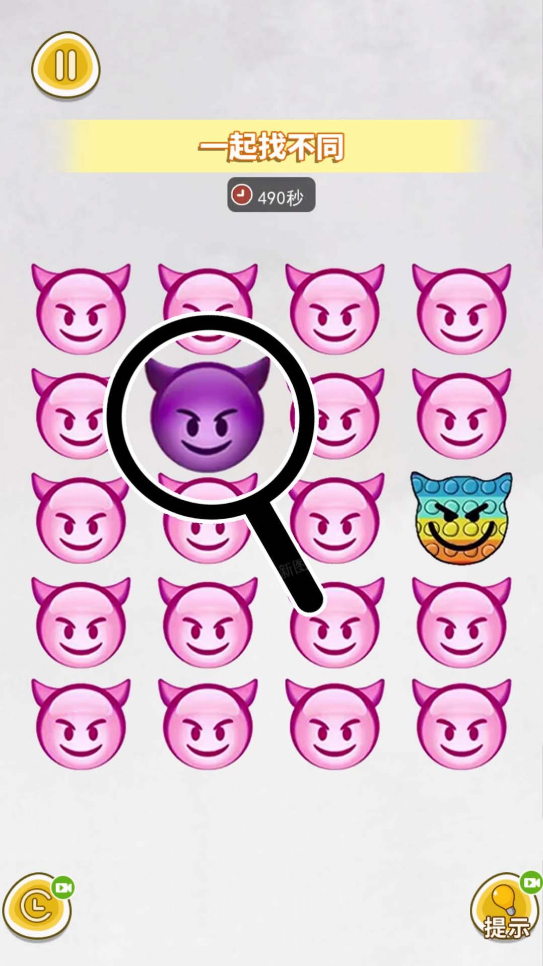 找出不同点游戏的玩法整体来说是非常有趣的,在游戏里玩家可以在不同的关卡之中开启不同的挑战,完成其中的任务,会有很多的迷惑性选项,为的就是让你在大量的图片之中没有办法快速的完成任务,感兴趣的用户可以来参与挑战哦。