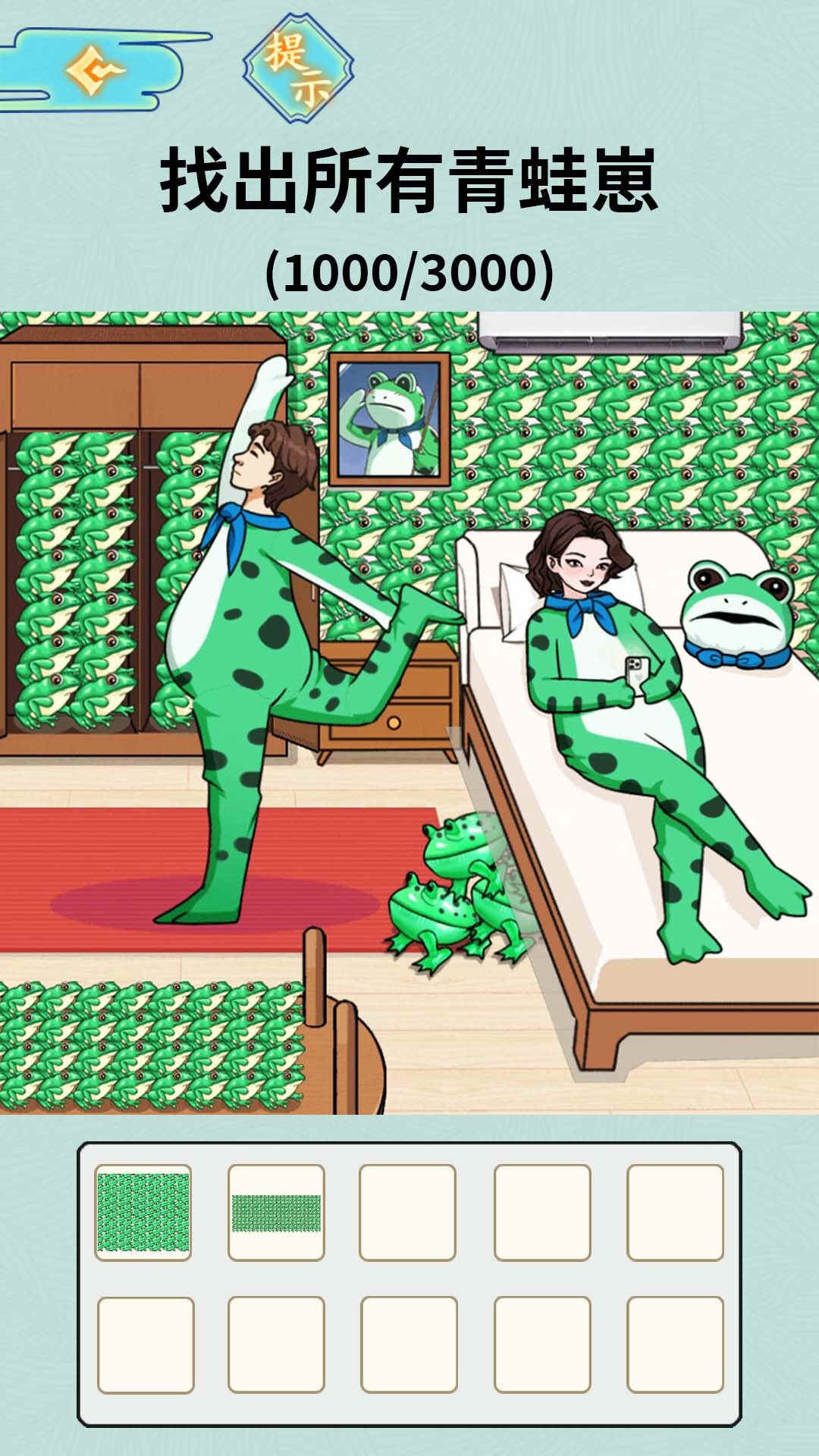 休闲益智找茬类小游戏,这里多款找茬游戏合集,根据游戏给出图片,找出图片所有青蛙、跳舞小熊,根据游戏内任务要求找出对应数量的物品,快来慧眼找茬挑战吧