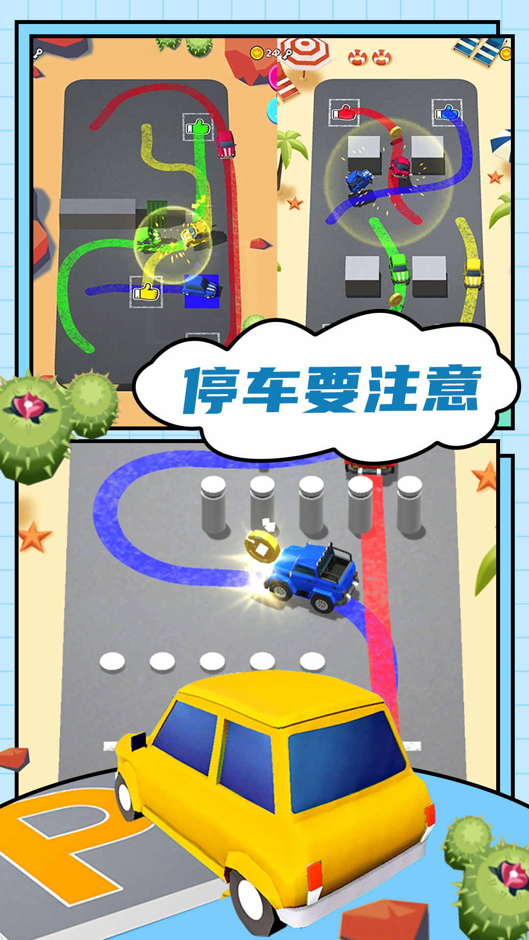 汽车城市模拟器,趣味画线停车小游戏,这里经营你的停车场,面对更多的小汽车,合理画线帮助小车停车,管理你的停车场,不要发生事故吧。