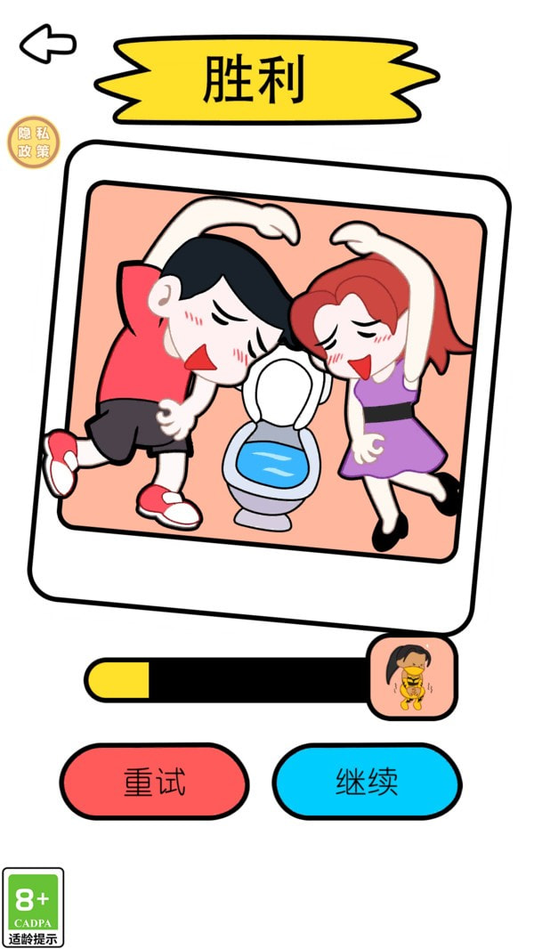 1、当男孩和女孩成功跟随线路到达厕所时,游戏就成功了。你的任务是找到解决谜题的最佳方式。