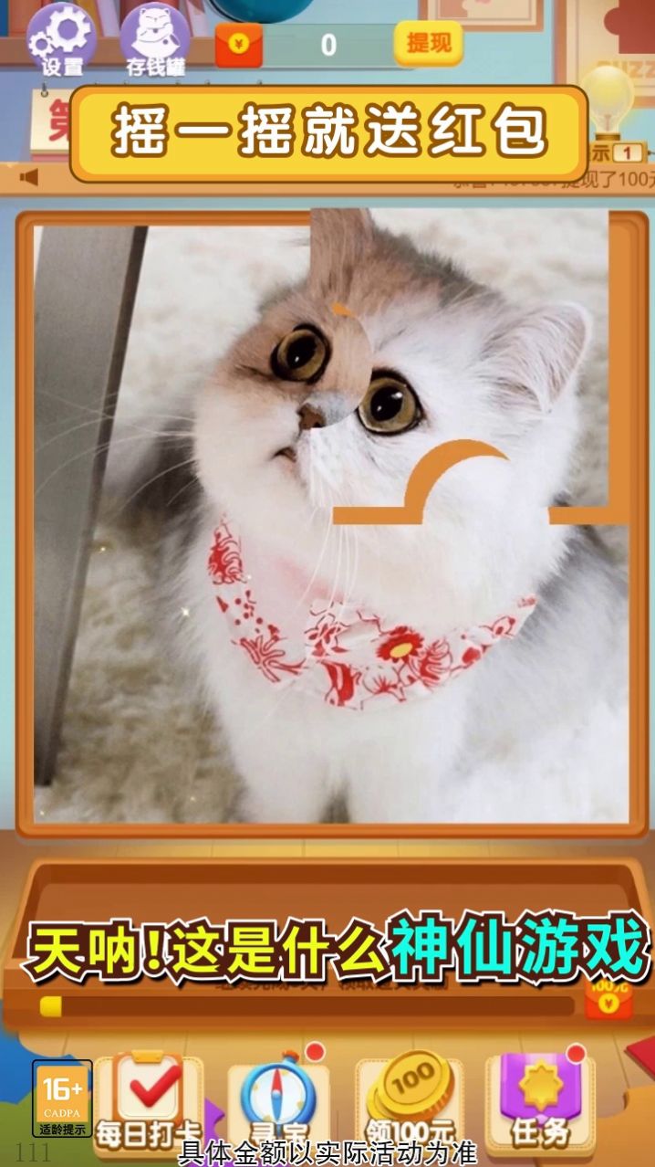 拼图红包群app是一款非常好玩的趣味拼图闯关游戏,游戏有非常多的关卡,玩家可以尽情的挑战闯关,有非常多的福利等着玩家去领取,玩起来十分的畅爽刺激,不仅可以休闲娱乐还可以赚零花钱,感兴趣的小伙伴快来下载游戏试玩一下吧,超多道具供你使用哦。