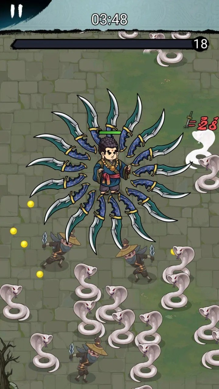 休闲益智游戏,游戏中你需要帮助角色突破敌人的包围圈,不断拾取强化道具来强化自己的duel力,迎战幕后的BOSS。