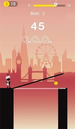 跨越差距的玩法非常的简单和令人上瘾,在游戏里玩家需要在沟壑之间搭建合适的跨越板,太长了和太短了都无法通过,在游戏里玩家需要掌握好力度,轻松的简单的玩法也给用户带来了极致的游戏体验!