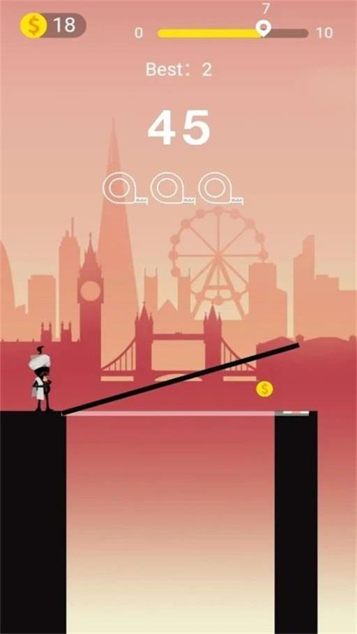 2、简单直观的操作方式,轻松控制木板长度,让火柴人顺利通过沟壑。