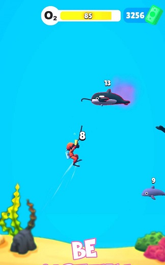 *游戏的操作非常简单,只需点击屏幕来控制潜水的方向和发射枪钩的时机。
