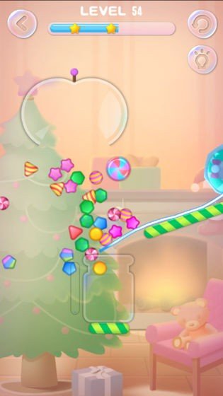 *独特的挑战机制:通过画线的方式,将糖果准确地掉入玻璃瓶中,测试玩家的精准度和判断力。