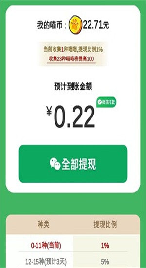 亿万招财喵作为一款能够给用户带来趣味招财喵养成的休闲小游戏,在游戏里玩家可以在游戏里培养各种猫咪,这样才能够赚取到丰厚的红包奖励,所有用户都可以完成任务来获得更多奖励,每天还会更新活动,参与其中就能够领取到更多的奖励,体验不一样的互动。