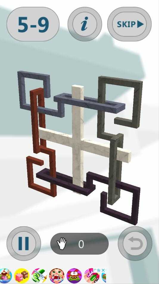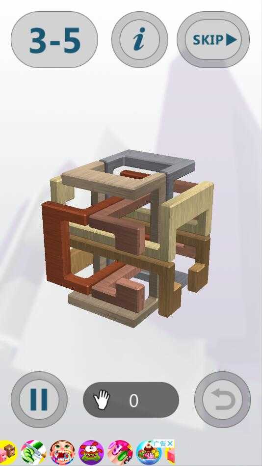 孔明锁游戏中玩家要解开每一关的孔明锁有的关卡很难哦,没关系,每一关的场景不同的,需要玩家有很强的逻辑思维能力,现在在手机上来图解。