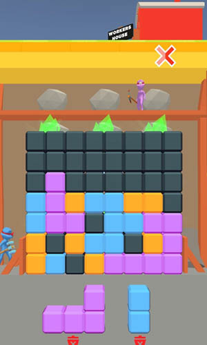 将展开一场矿山探险,要成为矿山探险家就要有探索矿山的工具和技能,你要搜集各种矿石并放入加工机器中,生产出不同形状的方块,然后进入矿井,用这些生成的方块去填充黑色的石块,每填满一层就会引爆一层,直到挖出所有的宝石。解锁更多的矿产资源,招揽更多的矿工帮你挖矿。