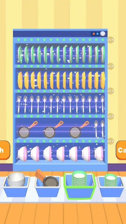 3、除了基础的清洗碗具玩法外,游戏还增加了许多有趣的元素。