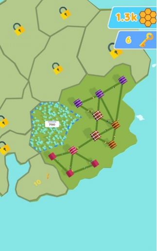 1、独特的颜色匹配机制,在游戏里玩家需要找到相同颜色的蜂窝并连接起来;