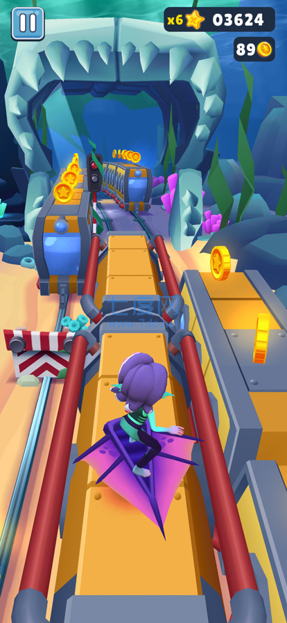 2、穿梭在地铁上,避开任何障碍物,拾取金币,收集更多奖励