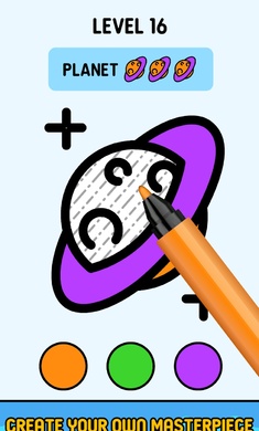 1、在屏幕的上方会给出参考的图案,使玩家知道该如何上色。
