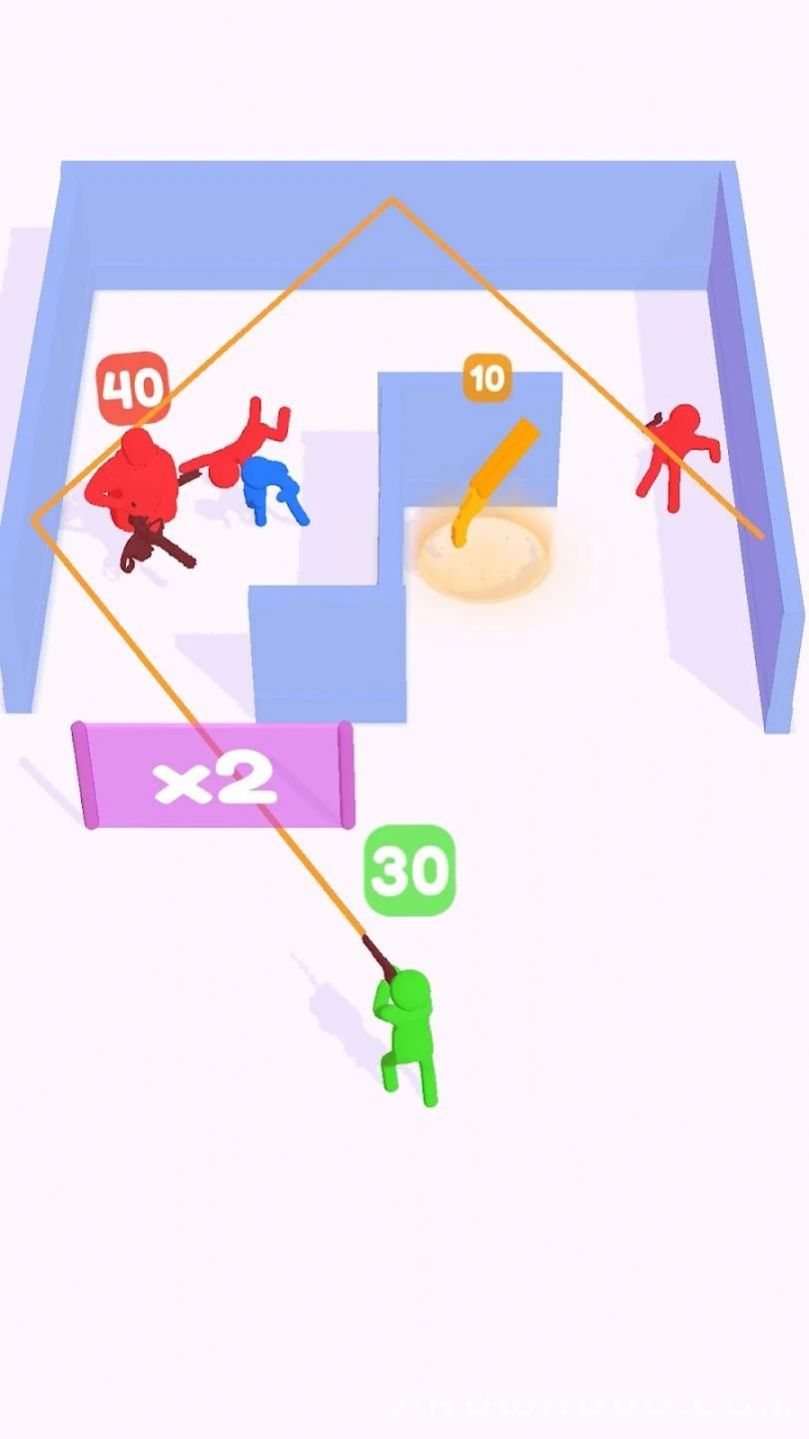 2、利用弹射的物理效应来改变子弹的行进弹道,使敌人都能在自己的轨迹上。