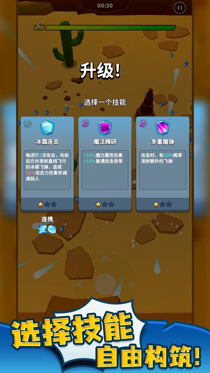 这作为一款魔法主题的幸存者游戏,在战场中迎战数量众多的魔法生物并生存下来,从多个元素属性中学习各类技能来提升自身战力,最终挑战首领吧!