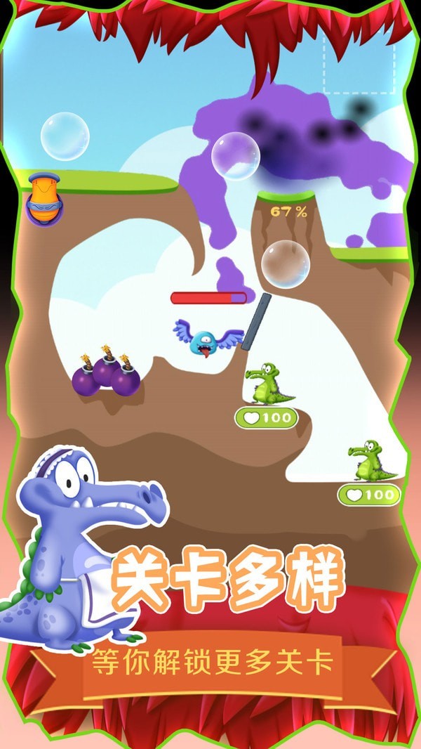 救救小鳄鱼游戏该游戏中拥有非常考验用户智慧的休闲闯关挑战,在游戏里面用户还可以帮助小鳄鱼去进行逃脱的,还有喷发的污水都是会碰到小鳄鱼的,游戏的各种玩法操作都是可以结束的,可以利用关卡提供道具的。