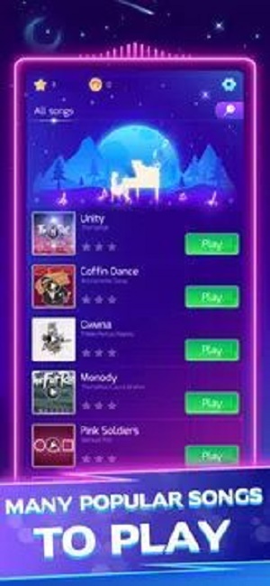 钢琴之星是一款点击乐块的指尖音乐游戏,游戏中有非常丰富的音乐曲库,玩家可以选择喜欢的音乐进行挑战,通过的关卡越多就能解锁更多的音乐,玩家只需要根据音乐的节奏点击出点的黑色乐块就能通关,感兴趣的玩家赶紧下载这款游戏吧。