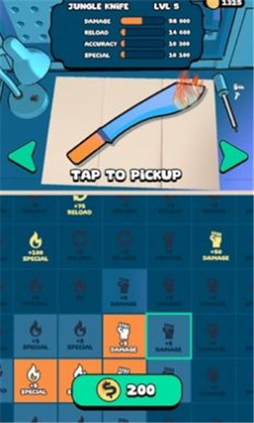 3.多样类型的飞刀:游戏设有各种类型的飞刀,在游戏里玩家可以根据不同的情况选择适合的武器。