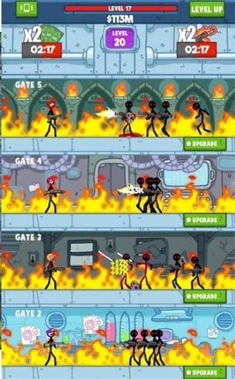 这里拥有50多种不同的角色以及强力的武器可以武装你的火柴人大兵。