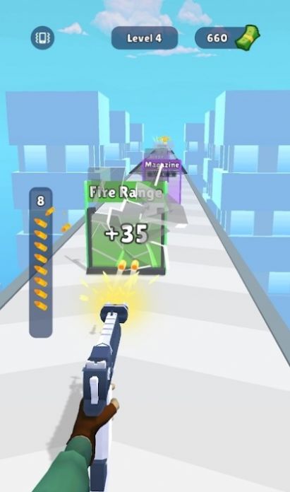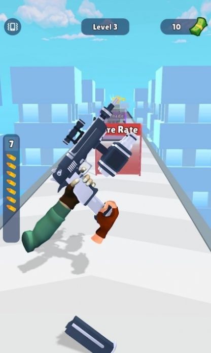 武器升级热潮作为一款跑酷闯关类型的手游,在游戏中你将控制一把枪闯关,你会在充满障碍和危险的跑酷世界中奔跑,利用枪来跳跃、攻击敌人、解决难题,完成各种挑战。此外游戏还提供了极具创意的游戏场景和角色,让你沉浸在一个充满惊喜和刺激的游戏体验中,让你感受跑酷的极致乐趣。