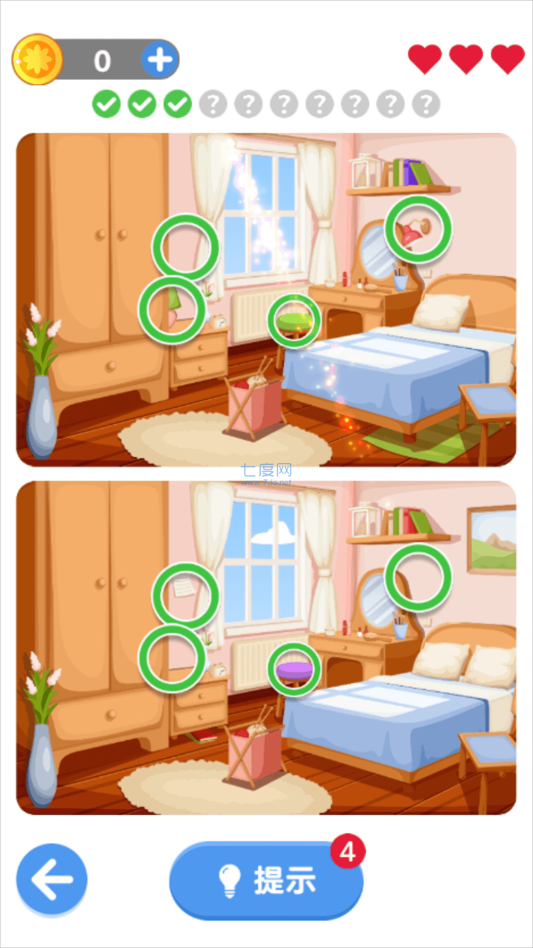 3、游戏时间是有限制的,需要用户在规定时间内找到所有的不同点,增加了游戏的挑战性;