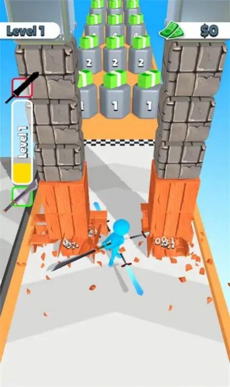 3、不断消灭众多的敌人,获取强力的资源,武器会变得更长;