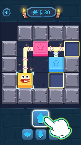 2.游戏界面简单,易于操作。 使用上、下、左、右方向按钮移动箱子,将相应的箱子推到合适的位置;