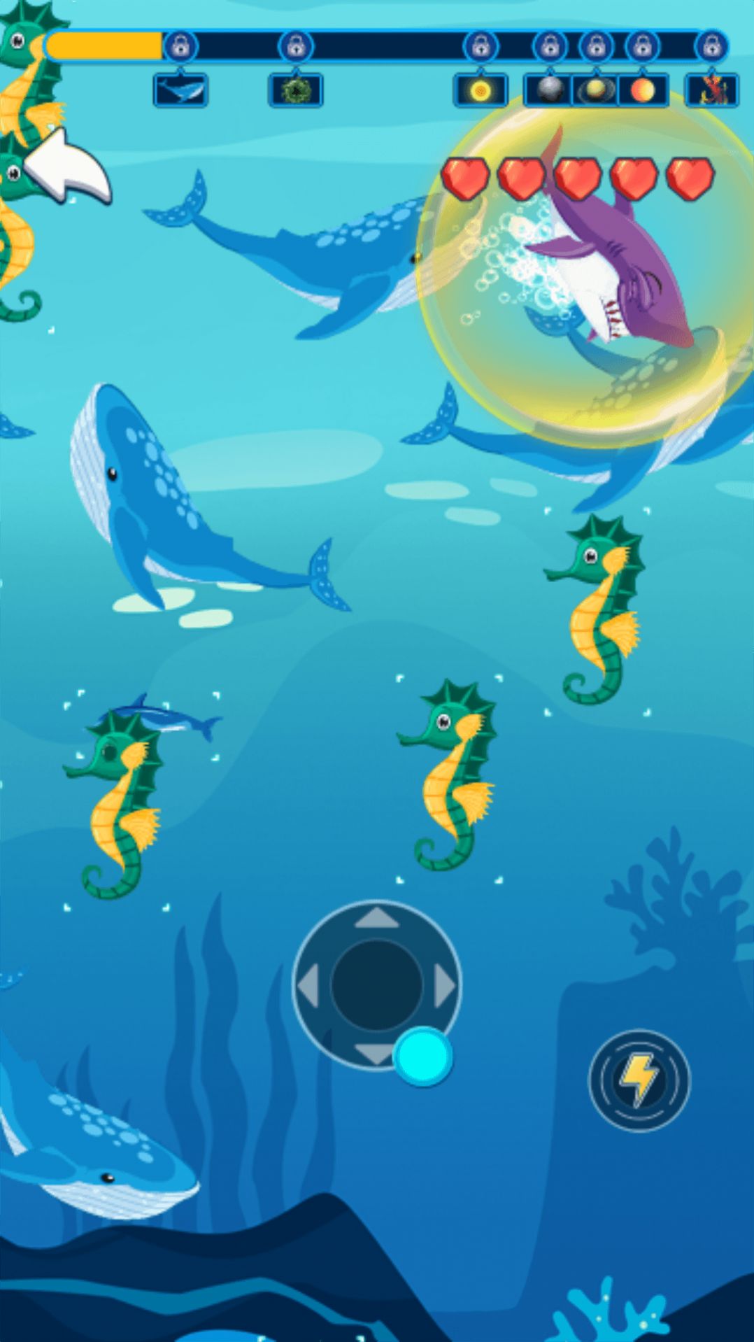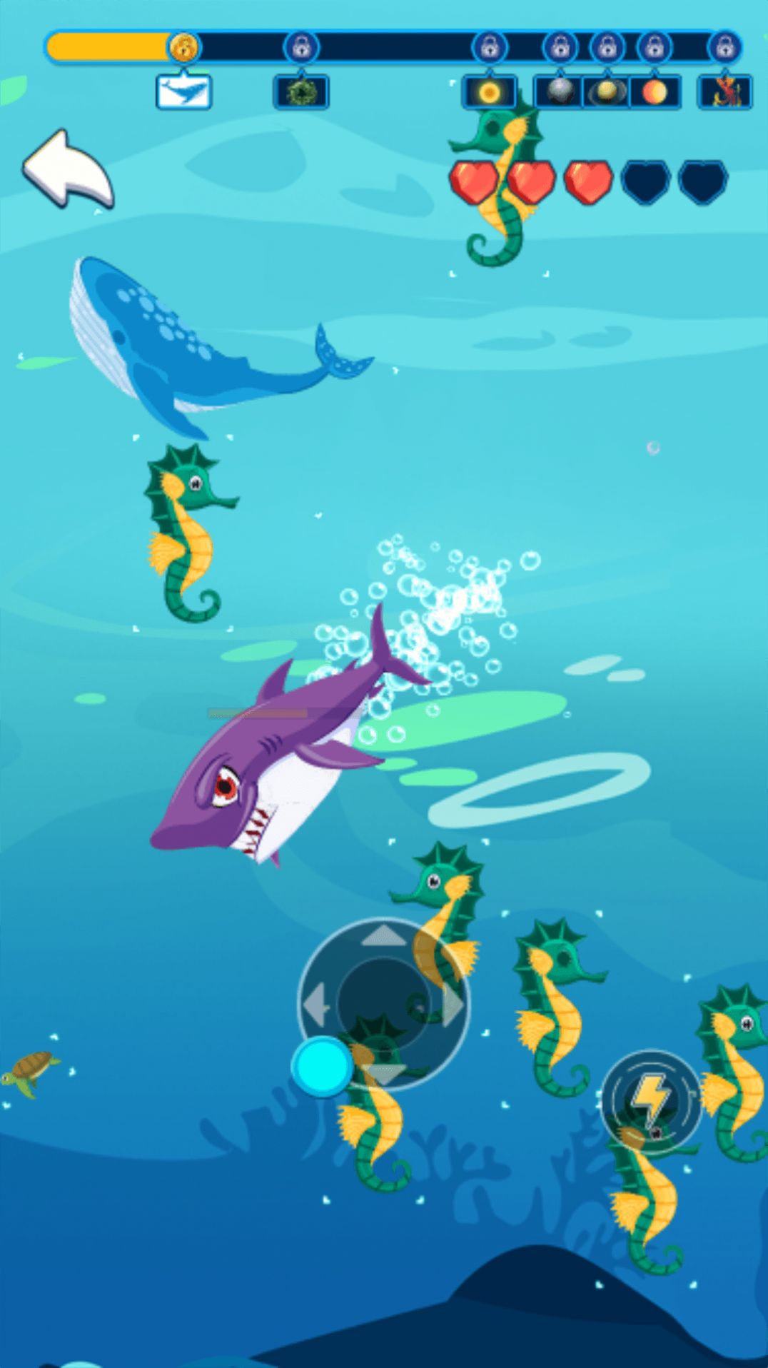 2、闯关挑战:完成每个关卡中的任务和障碍,解锁更高级别的海洋区域。