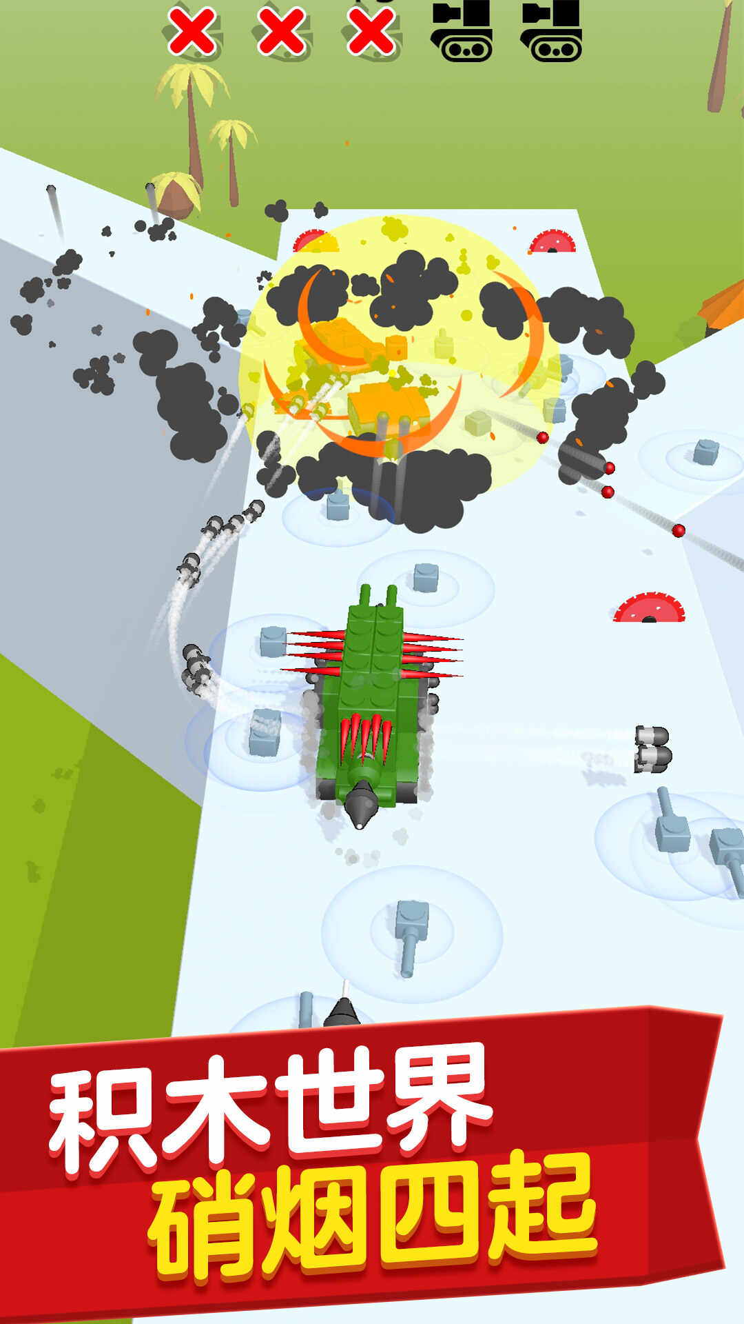 3、尝试不同的游戏操作,大型战争坦克战争游戏以获得机器的概念武器以便更好的射击。