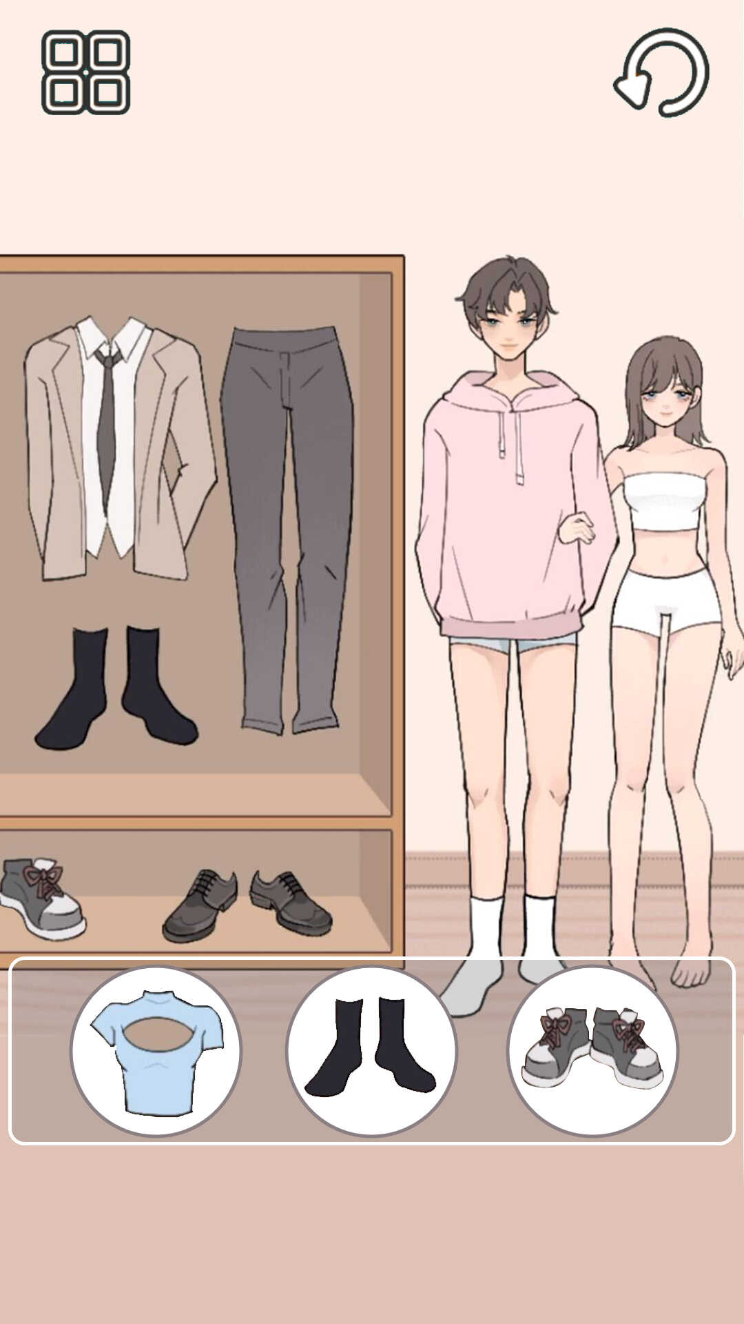 1.游戏没有任何的难度,点击选择相应的服装就可以穿上看一看效果。