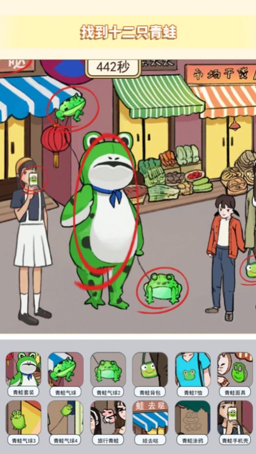 2、用户游戏中可以找到各种五花八门的东西,石头、表情、花朵、青蛙等。