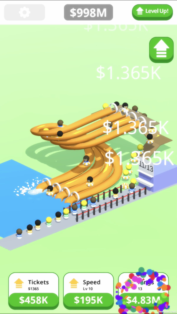 3、您只需要轻松点击即可不断升级您的水滑梯,上手体验很简单。