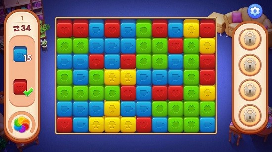 1.轻松上手:将拼图游戏板上的两个相同元素合并,创造新的物品和工具,以翻新客厅、卧室、厨房、花园和温室等各种房间;