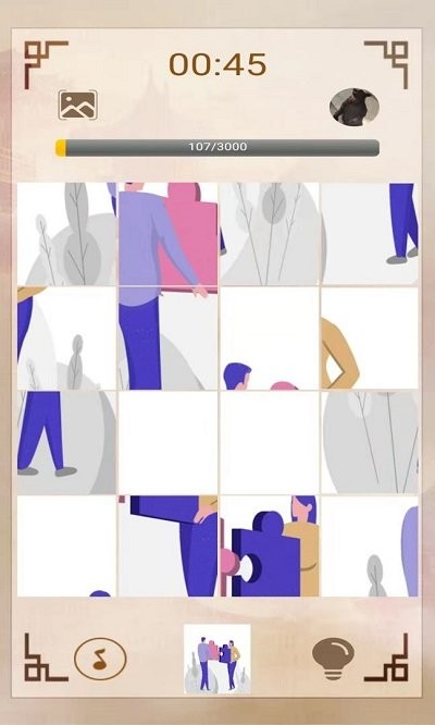 3、爱玩乐拼中有很多谜题等待用户完成,简单有趣,在游戏里玩家可以自由选择难度。