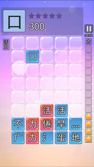 趣味汉字作为一款2048+消消乐玩法的手游。手游操作模式十分简单,只需要左右下滑动即可,400多唯美的词汇,收集系统即将上线。画面有种像是老板的俄罗斯方块,很怀旧。背景音乐很适合手游的玩法和模式。无数用户熟悉的词汇,日本动漫、小说、国产动漫、传统文化应有尽有。概率提示,落下的汉字与其他汉字能否合成提示。