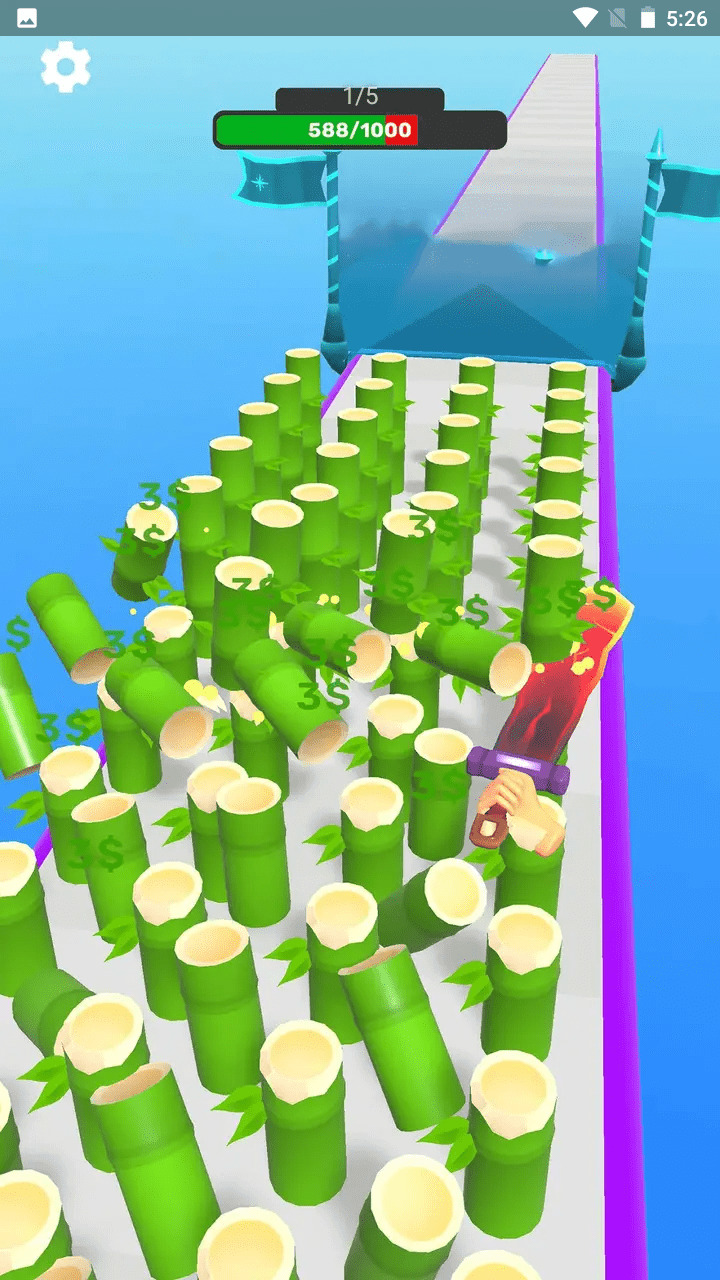 1、通过滑动屏幕,你可以控制游戏中的剑砍击障碍物,斩断一切障碍物。
