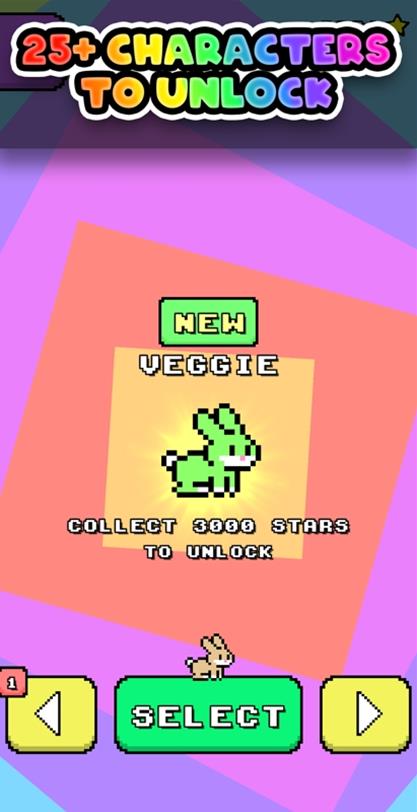 3、像素的画面,十分可爱的小兔子,控制它不停跳跃就行;