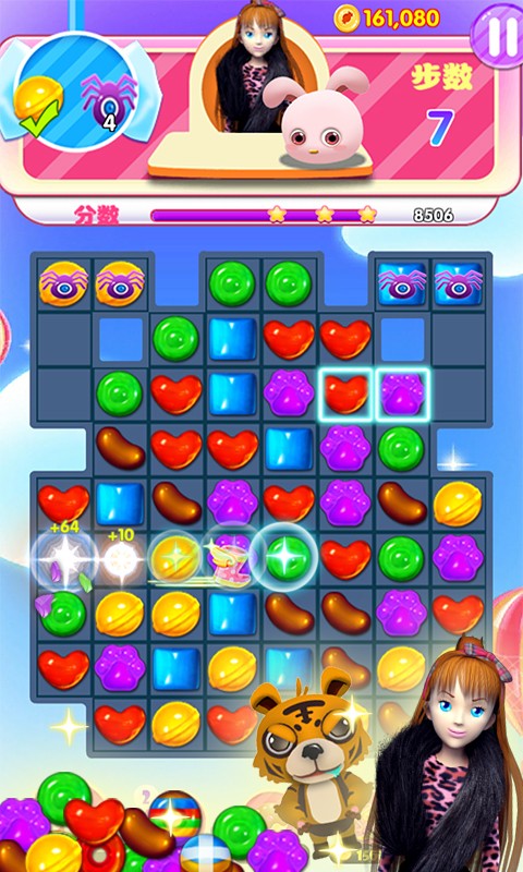 2.游戏的玩法非常的简单,只需要匹配三个或三个以上同样的糖果就可以进行消除。