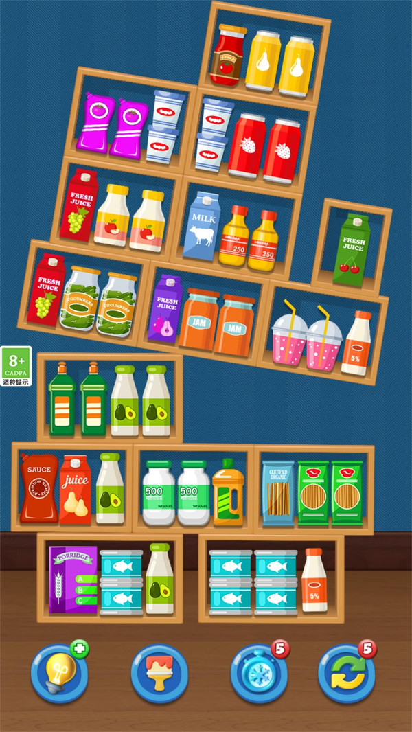 整理个货架作为一款整理解压小游戏,在该游戏中你想要将凌乱的货架整理整齐,将相同的物品都放置在同一个格子内进行消除,这样就能够顺利通关,感兴趣的小伙伴快来下载游戏体验试试看吧。