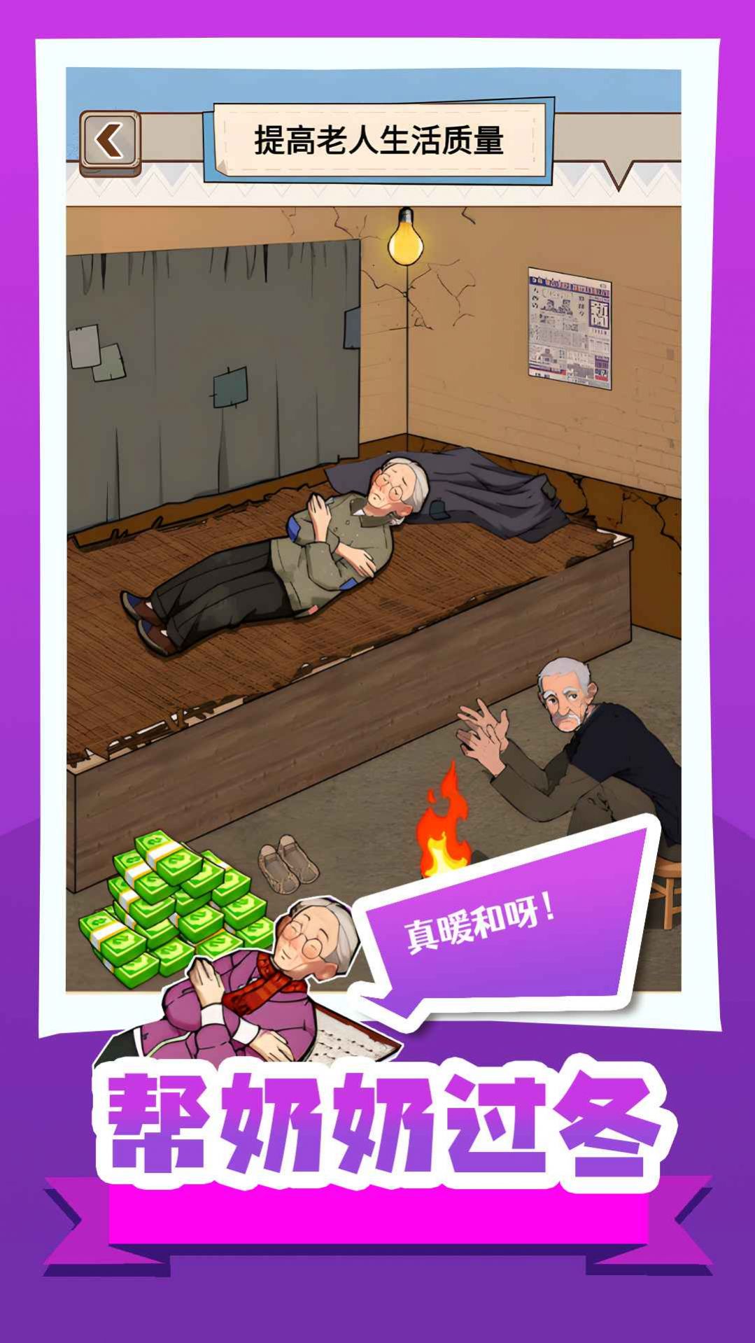 抖音上非常火爆的益智解谜游戏,玩起来还是相当有意思的,你想要在游戏里面想尽各种办法改善老人的生活质量,让奶奶和爷爷在这个寒冷的冬天过上好日子,不被冻着,你是否想到好主意了呢?