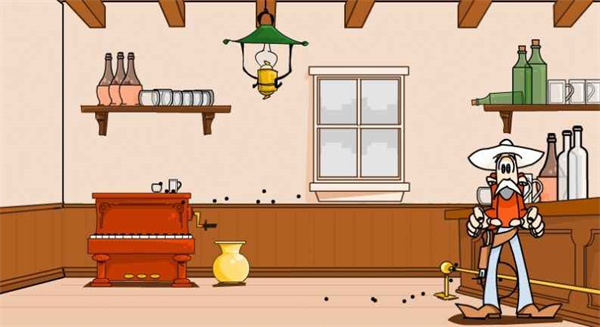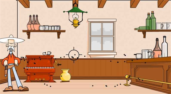 西部怪老头游戏中这个怪老头看似是无敌的,无论是直接射击还是通过射击道具都是没什么办法打倒他的,也许是为了平复玩家的心情,只需要点击游戏中的exit(退出)按键后,场景就会出现一个桶从天而降将老头砸倒,也算是帮玩家出了口气。