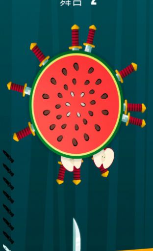 2、在恰当的时机进行点击,让飞刀成功的射中水果就好;