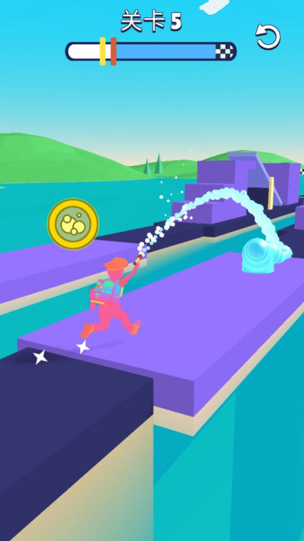 2、用户在跑酷过程中遇到各种障碍时,可以通过喷洒更多泡沫来通过陷阱。