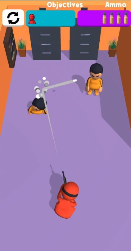 2、你手中的枪射出子弹可以转弯,利用这一特性,打在房间内的墙壁或其他的物品来反弹子弹;