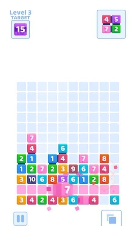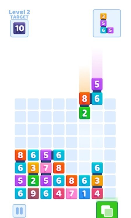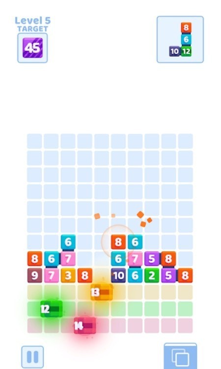 1.在积木落入底部之前玩家可以随意的变化积木的形状,让积木上的数字可以和下面的数字进行融合。
