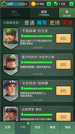 玩家在搭配好自己的卡组后,还能在20位各具特色的将军卡中选择一位作为你的军队指挥官。