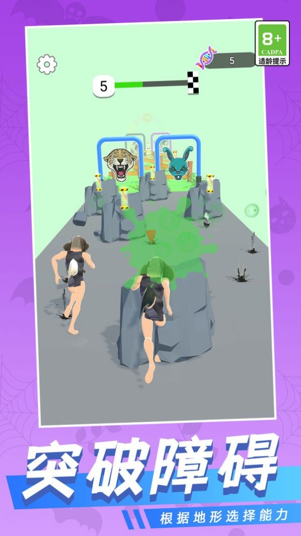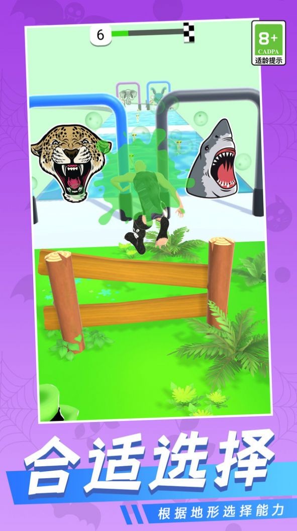 多重宇宙跑酷作为一款可变异的跑酷模拟经营游戏,游戏强调速度、变形、地形、障碍物等元素,使玩家体验到猎豹、大象和鲨鱼等不同生物的特点,也可以通过隐藏关卡进入经营模式获取强力动物蓝本。