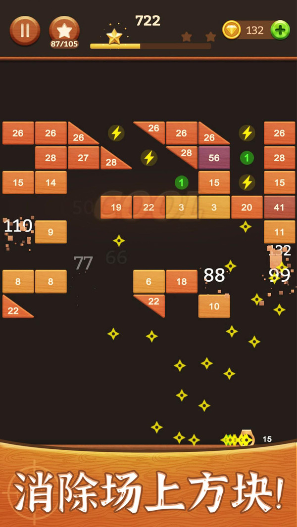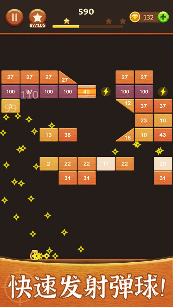 用户只需要滑动屏幕,瞄准方向击打很多的砖块即可,是非常方便的。